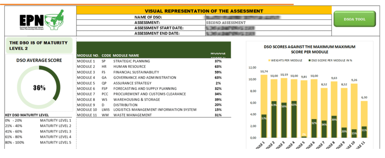 In addressing the identified gaps, one of the objectives was to develop a mechanism to help DSOs assess and evaluate their supply chain maturity so as to be able to pinpoint ways of improving their delivery of health commodities.